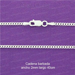 Cadena en plata de ley barbada 2mm ancho y largo 40cm.