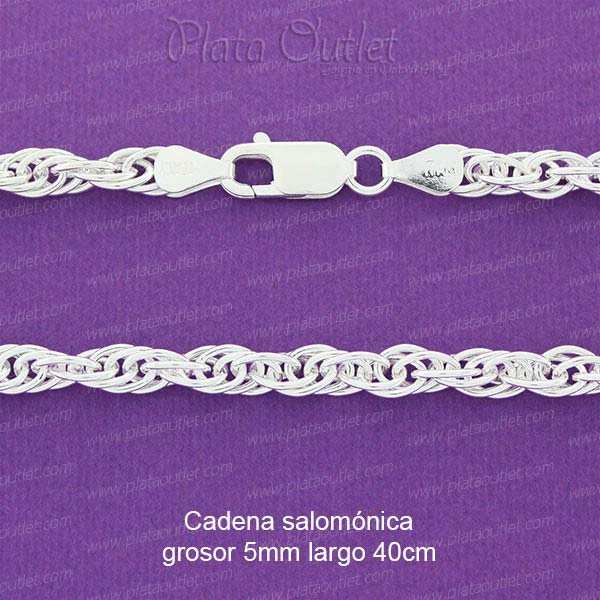 Cadena en plata de ley cordón salomónico grueso, 5mm de ancho y largo 40cm.