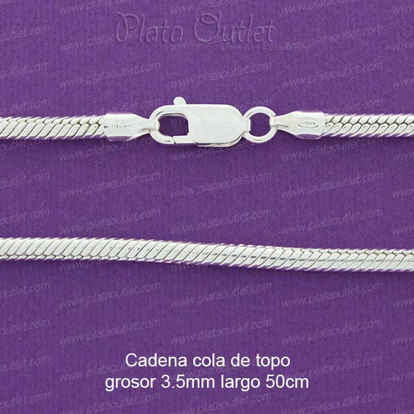 Cadena en plata de ley cola de topo redonda extragruesa 3.5mm de ancho y largo 50cm.