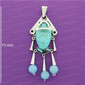 Colgante en playa con cara maya de piedra tallada mediana, disponible en varias piedras.