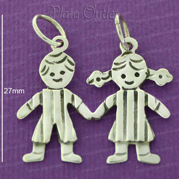 Colgante plata parejita niña y niño chicos vestidos.