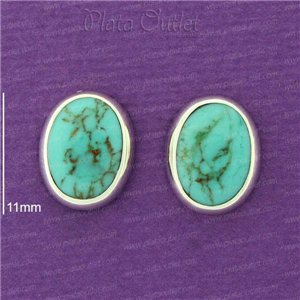 Pendientes en plata oval 11x8mm con piedra reconstituida, disponible en turquesa clara, turquesa, malaquita, negro y abalón.